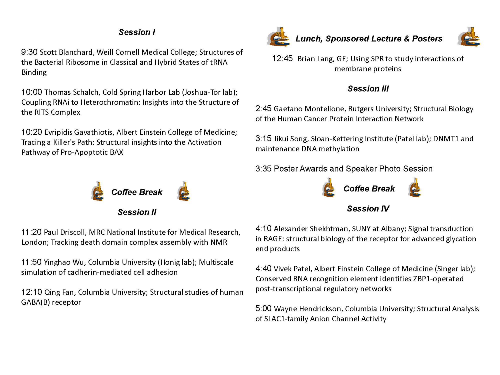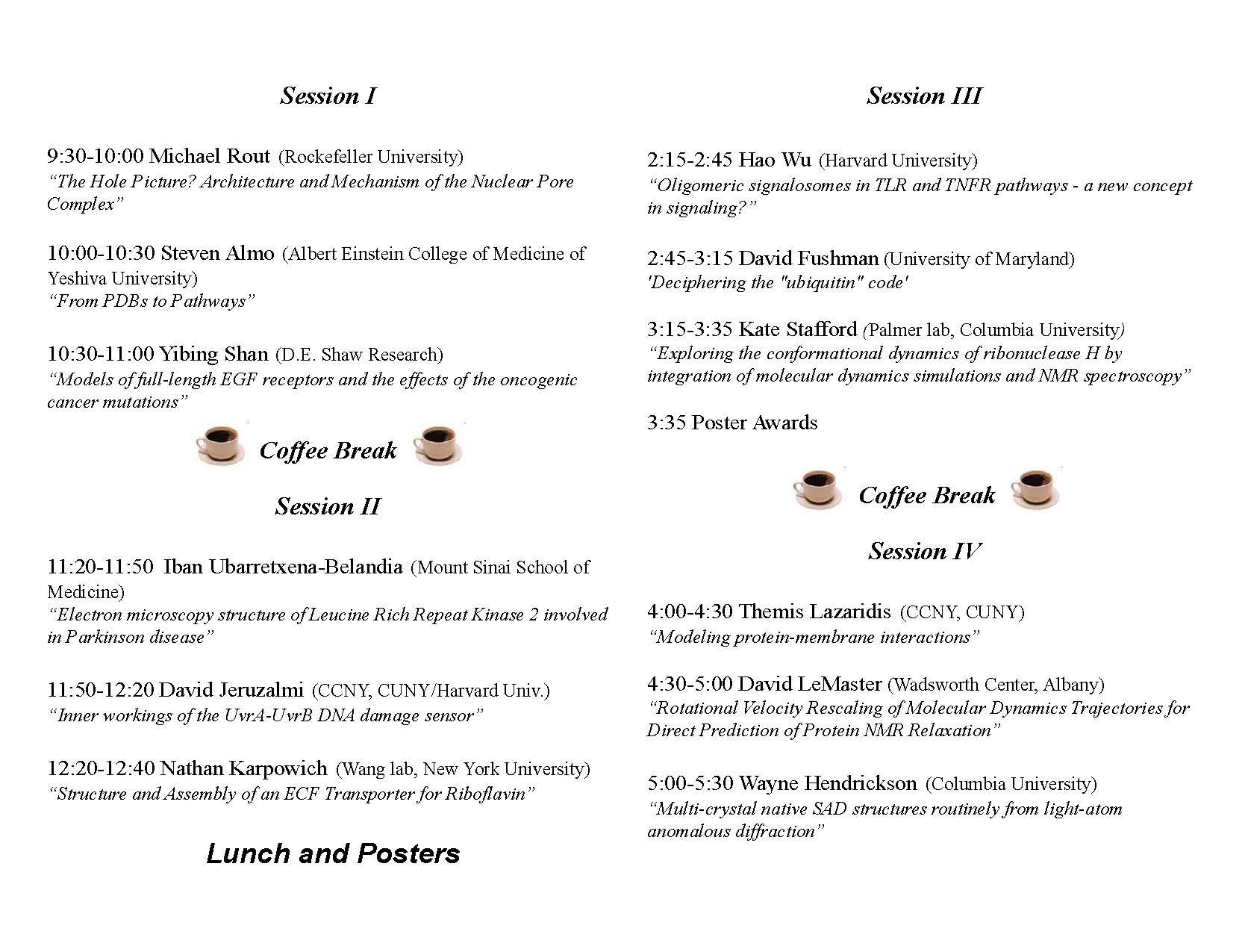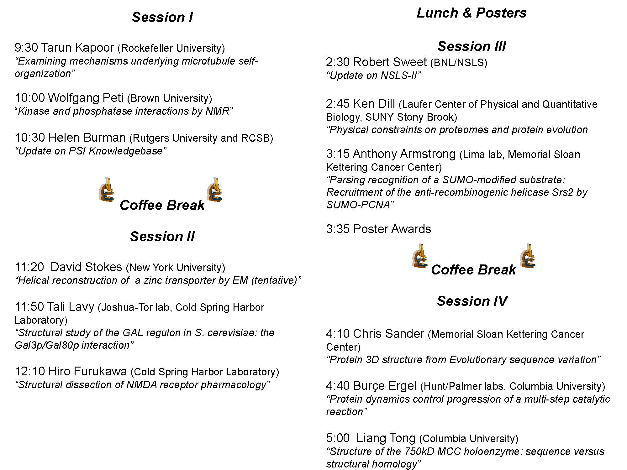 Eric Greene, Columbia University Rinku Jain (Aggarwal Lab) Mount Sinai School of Medicine Wei-Li Liu, Einstein College of Medicine Ming-Ming Zhou, Mount Sinai School of Medicine Joel Butterwick (MacKinnon Lab), Rockefeller University Steven Ealick, Cornell University John Hunt, Columbia University Michael Ward, New York University David Case, Rutgers University Andisheh Abedini (Schmidt Lab), New York University School of Medicine David E. Shaw, D.E. Shaw Research Noel Carrascal, Stony Brook University Jaehyun Cho, Columbia University Tanvir Shaikh, Wadsworth Center